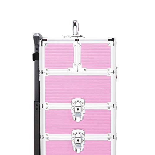 Met stevig aluminium frame en robuuste metalen hoeken is de koffer aantrekkelijk en stabiel. Onze cosmetische trolley biedt een grote verscheidenheid aan functies. Het is een grote 4-in-1 sieraden- of cosmetica-rolkoffer. Door de uitschuifbare handgreep en het rolsysteem kan hij prima worden getrokken en kan overal mee naartoe worden genomen.