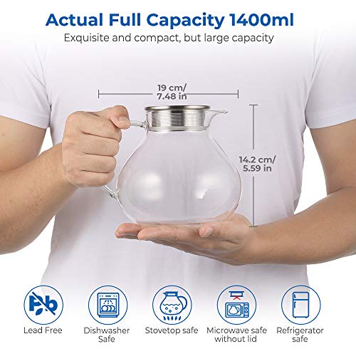 ecooe 1400ml Glazen Theepot met Verwijderbare 18/10 Rvs Infuser Hittebestendige Borosilicaatglas Theepot voor Losse…