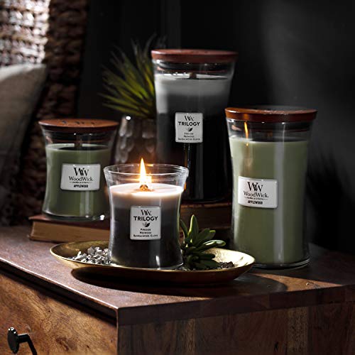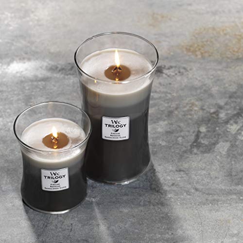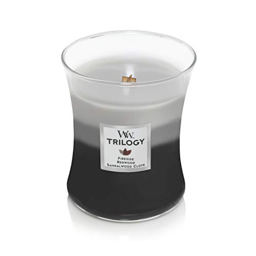 Deze trilogy-kaars combineert drie populaire geuren: Fireside (onze bekendste geur), Redwood en Sandalwood Clove.